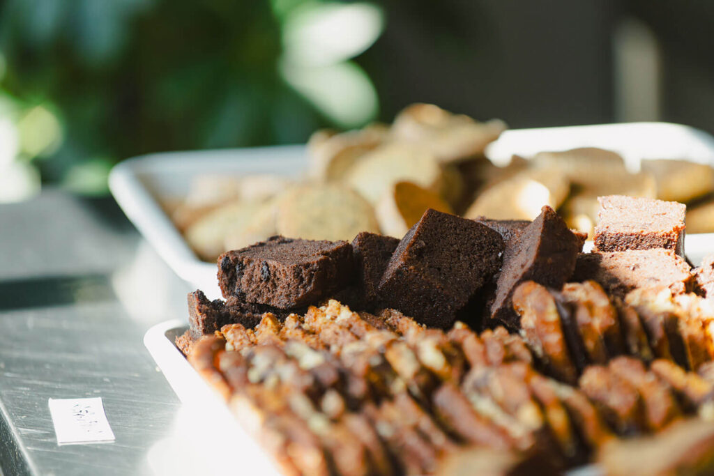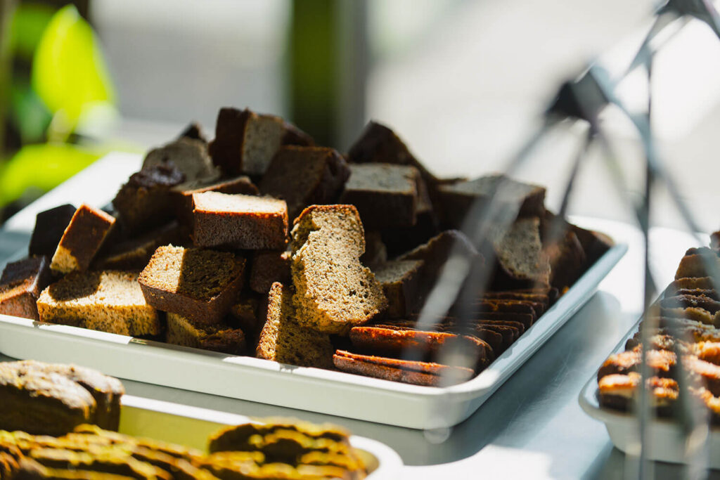 端材を活かしたパウンドケーキやクッキーを、好きなだけ味わっていただけます。